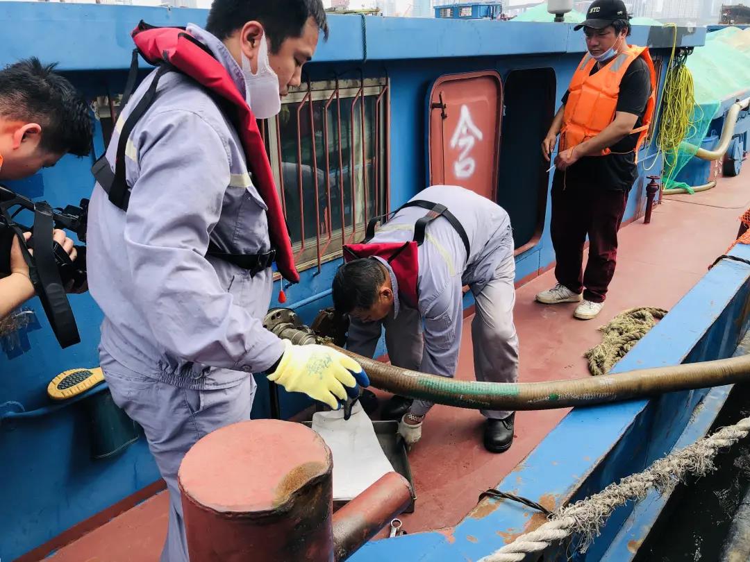 楊浦海事局秦皇島路海巡執法大隊聯合上海水域環境收運服務分公司、上海荻晟船舶服務有限公司,開展船舶污染物公益接收活動,組織專業接收船舶和黨員志愿者上門為系泊浮筒驛站的船舶接收污染物,以實際行動踐行“學黨史守初心、辦實事解民憂”。