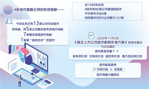 完善的退市制度是股市的“凈化器”和“穩定器”。2020年11月2日,《健全上市公司退市機制實施方案》獲審議通過,滬深交易所也于2020年12月31日發布實施新修訂的退市制度。