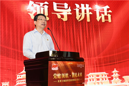 6月10日,在由中共上海市閔行區組織部指導,中共閔行區華漕鎮委員會主辦的“黨建領航 創見未來”虹橋主城前灣黨建聯盟成立儀式上,閔行區委副書記、組織部部長王觀寶發表講話。