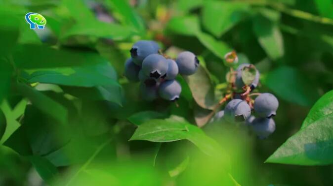 只見在大片的藍莓地里,一顆顆“藍精靈”綴滿枝頭,熟透的藍莓包裹著一層厚厚的果霜,透出幽微的藍紫,讓人垂涎欲滴。