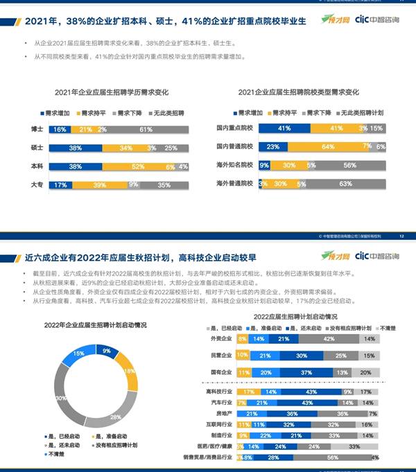 另外,截至目前,近六成企業有針對2022屆高校生的秋招計劃,與去年嚴峻的校招形式相比,秋招比例已逐漸恢復到往年水平。