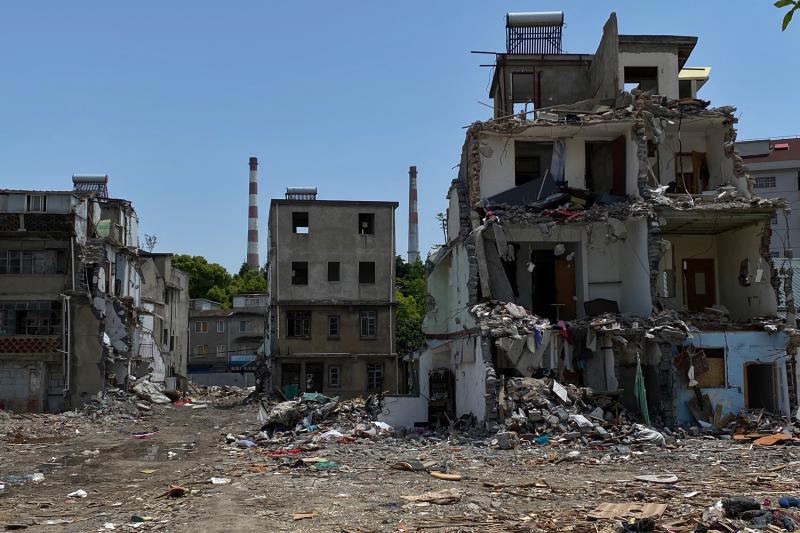 已動遷的地塊上,留下一座四層高的居民私搭房屋,四處已成廢墟。