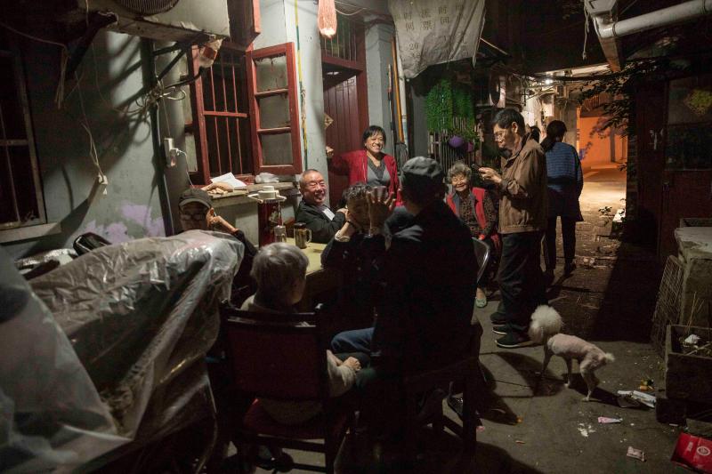 居民坐在弄堂口歡快地聊天,小狗也在一旁湊熱鬧。動遷以后,曾經的老鄰居也將各奔西東。