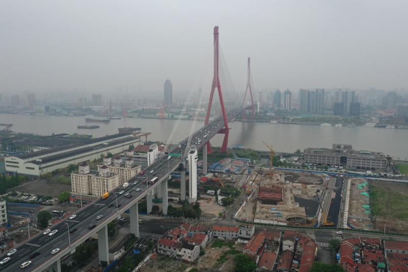 鳥瞰楊浦大橋下的成片老城區,舊改動遷后,許多生活在舊里的居民將迎來新生活的陽光。
