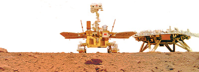 由祝融號火星車拍攝的“著巡合影”圖。