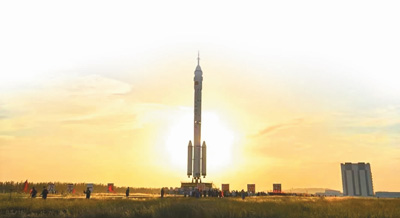 神舟十二號載人飛船與長征二號F遙十二運載火箭組合體。