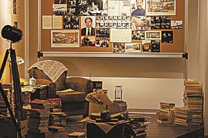 展覽重現電影《開天辟地》的創作場景!堕_天辟地》是我國第一部展現中國共產黨建立這一重大歷史事件的影片,也是上影廠為紀念中國共產黨成立70周年而拍攝的。展覽中散落在桌椅、角落的電影劇本,看似編劇和導演剛結束一場討論以及對劇本的修改。