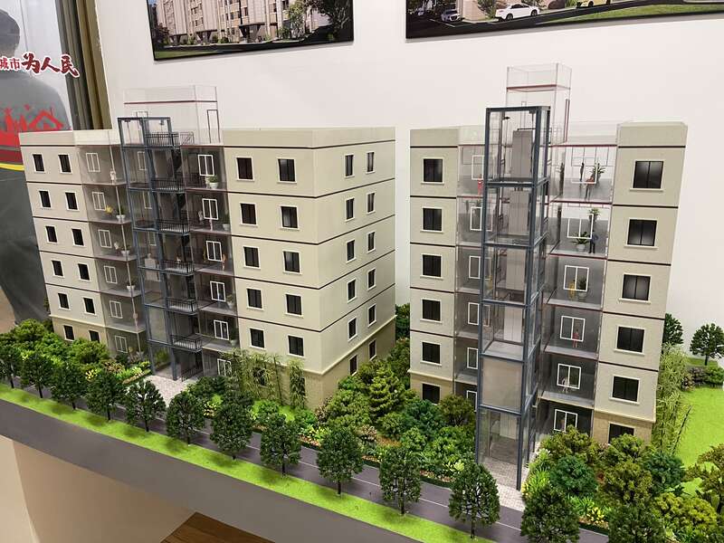 虹口區江灣鎮街道老舊小區加裝電梯效果展示模型。