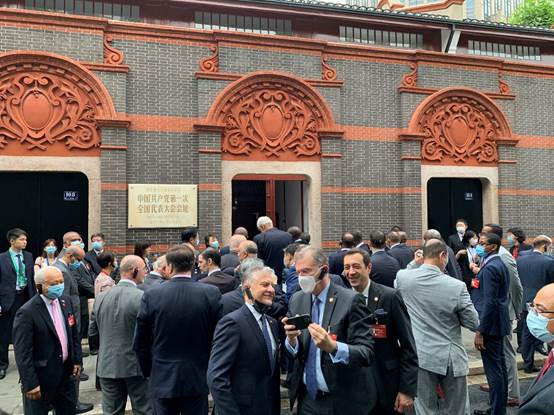 6月16日上午,40多個國家駐華使節應邀參觀了中共一大會址和紀念館,并參加“回望百年歷程,展望美好未來”中外座談會。