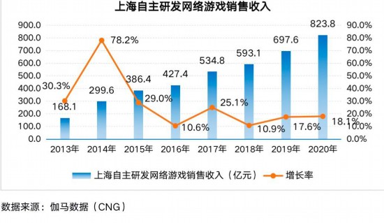 2020年上海自主研發網絡游戲銷售收入達823.8億元,增量超過120億元。報告分析,一方面,上海擁有眾多老牌游戲企業依然保持龍頭地位,如盛趣、巨人、游族等,同時還有較多本土孵化的新生代企業,如莉莉絲、米哈游、鷹角等,它們近年來均有表現優異的產品,共同支撐起上海游戲產業蓬勃發展的態勢。另一方面,部分大型游戲企業通過在上海建立研發團隊的方式強化自身研發實力,使得上海的自主研發基礎日益加固。