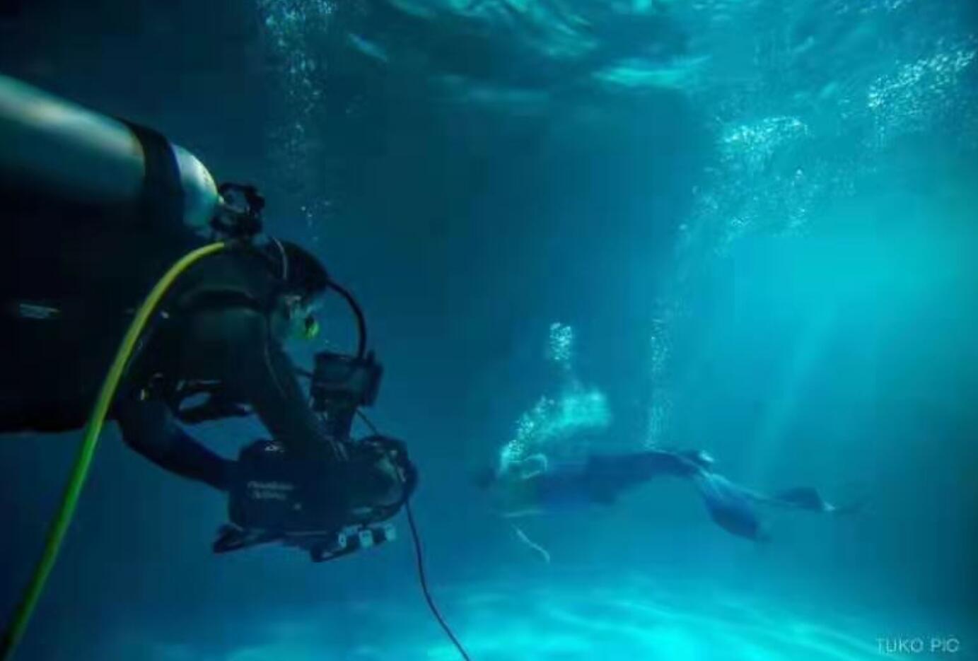 水下拍攝,演員最敏感的是水溫!镀怼愤@段舞舞蹈,只有短短幾分鐘,但水下拍攝超過26小時!盀榱俗屗屡臄z人員更加舒適,水溫可以調節,只要攝制組提前預約,并告知溫度——一池水近500噸,加熱到預定溫度得兩天!