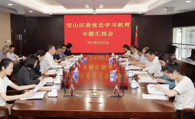 6月21日上午,寶山區委黨史學習教育專題匯報會召開,市委黨史學習教育第一巡回指導組組長鈕曉鳴及全體組員到會指導。區委書記、區委黨史學習教育領導小組組長陳杰匯報區黨史學習教育開展情況。區委常委、宣傳部部長趙懿,區委常委、組織部部長徐靜出席。