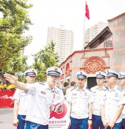 在守衛中共一大紀念館消防安全的同時,黃浦區消防救援支隊專門挑選優秀青年指戰員代表,成立了“初心之地火焰藍黨史講解隊”,讓一線消防員在守衛初心之地的最前沿學黨史、悟思想。