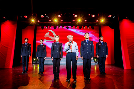 報告會的最后,長寧分局的8名民警共同演唱了原創歌曲《信任擔當》將整場活動推向高潮。新黨員民警上臺進行了入黨宣誓。