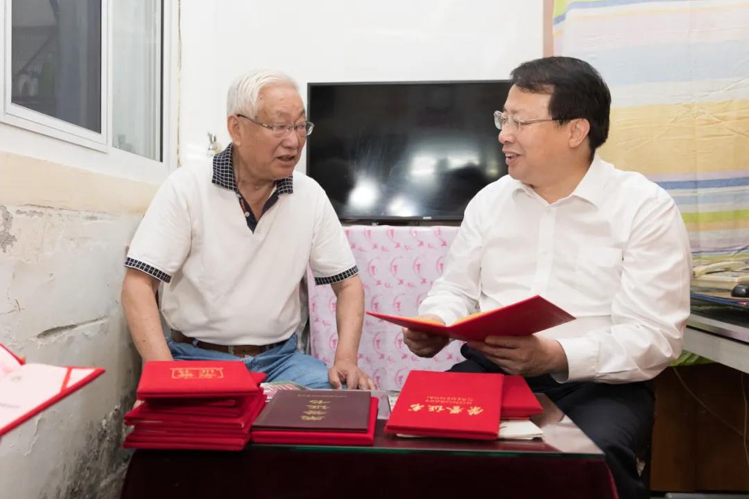 龔正分別走訪慰問了老黨員李國維、秦培明。李國維是上海著名的婦產科專家,在60歲時實現入黨心愿,今年已經101歲。龔正一行登門看望,感謝老人為我國醫學事業作出的貢獻。市領導關切詢問老人的生活情況,叮囑相關部門多關心高齡老人,在推進舊住房更新時加強適老化改造。家住黃浦區老城廂的秦培明,退休近20年來克服病痛、堅持服務社區。龔正與他并肩而坐,傳看一本本榮譽證書,對老黨員不忘初心、在社區發揮“老娘舅”的作用深表敬意,詢問他還有什么困難,并要求街道多為困難黨員和群眾辦實事、解難事,讓他們感受到更多溫暖。