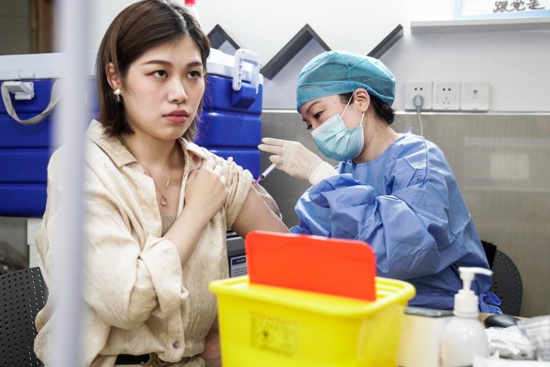 年輕白領王女士今天由媽媽陪伴來打疫苗的,王女士介紹說,自己平時出差頻繁,在上海的時間很少,今天休息在家,正好看到業主群里的通知,想想還是過來打疫苗吧。王女士的媽媽在一邊說:“我早就打好了,一直叫她打,就是沒時間,而且她一直在外面跑,打好疫苗,我就放心了!”