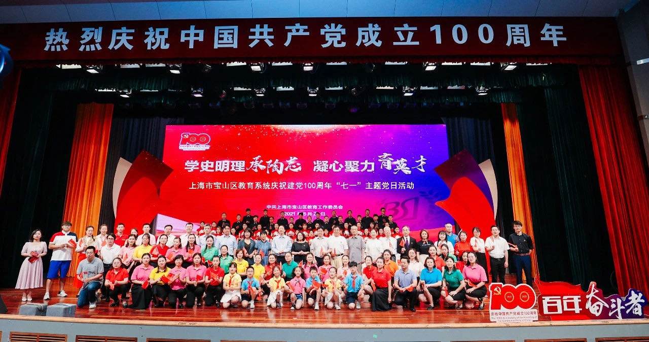 寶山區委組織部副部長、區社會工作黨委書記張麗英,區紀委監委第一派駐紀檢監察組組長朱錦忠、區教育工作黨委書記沈杰、區教育局副局長張治、區黨建服務中心主任周璟出席活動。區教育工作黨委班子成員、各基層單位黨政負責人、教育局機關全體黨員、優秀黨組織以及個人代表參加了現場活動,共同慶祝中國共產黨成立100周年。