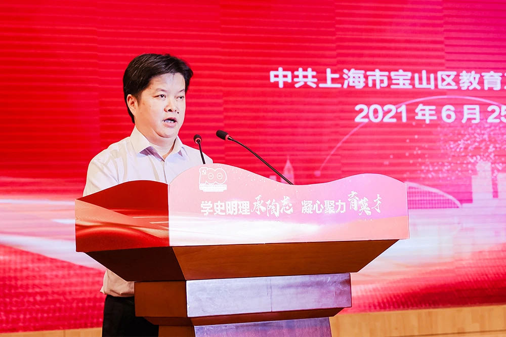 6月25日,“學史明理承陶志 凝心聚力育英才”上海市寶山區教育系統慶祝建黨100周年“七一”主題黨日活動在吳淞中學舉行。