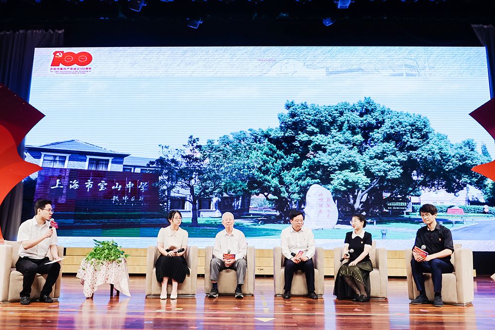 主題論壇《匠心致百年》由寶山區教育局團工委副書記朱健主持。寶山中學老校長李思民,黨支部書記吳衛忠,青年黨員教師李蔚、陸沁、俞黎琛齊聚一堂,從抄寫“萬字黨章”到“雙新”背景下學校黨員隊伍建設,再到青年教師專業培養與成長,老中青三代教師共話屬于他們的師者匠心。