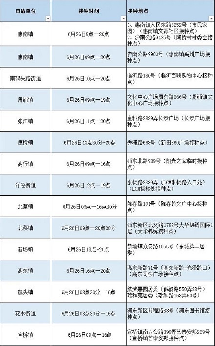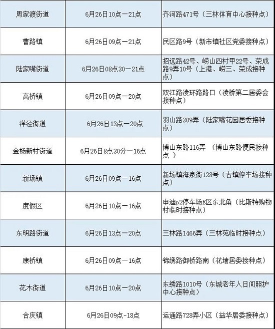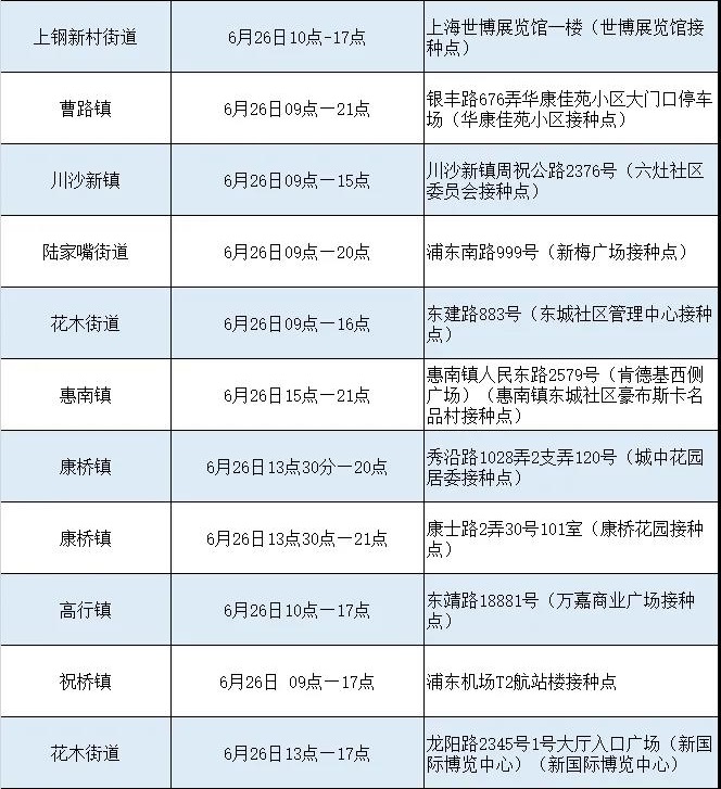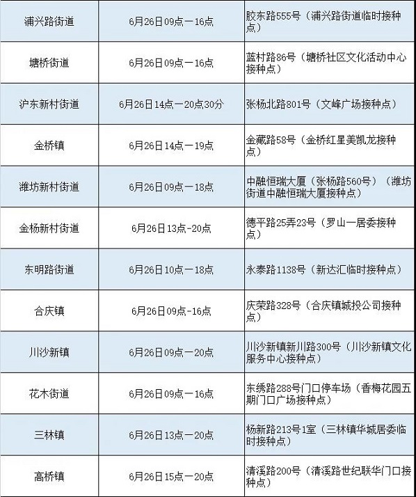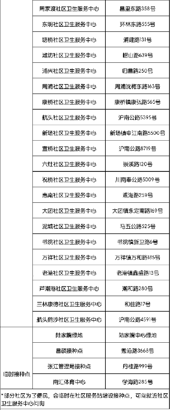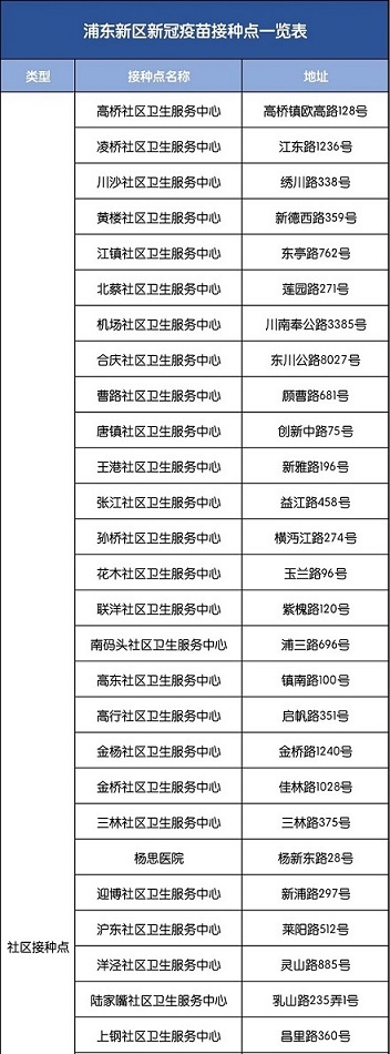浦東新冠疫苗接種點信息詳見下表,來看看哪個離你最近。