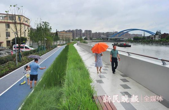 蕰藻浜寶山段沿岸景觀貫通提升改造工程——1.4公里的廟行段濱水步道近日正式貫通開放。蕰藻浜廟行段南岸沿線,東起共和新路高架橋西至康寧路橋,全長約1440米,涉及紡發智園公司、智力公園、龍盛活力小鎮、棟霖科技園、野橋村等多個貫通點。以公共空間提升、綠地建設和區域功能更新為實施路徑,拆除園區“圍墻”,打造周邊科創企業和市民生活互融的“15分鐘生活圈”。