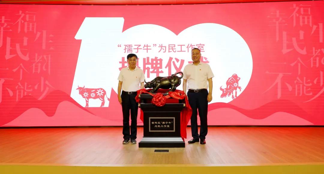 活動上,全市首家區級“孺子!睘槊窆ぷ魇医遗瞥闪,并進行了“孺子!本窠话魞x式!斑@樣的孺子牛,我們還要送進居民心中!眳^民政局有關負責人表示,未來,工作室將以黨委領導、政府主導、社會參與的聯動機制,聚焦民心民生民情,讓百姓受益得實惠!拔覀冞將建立‘區、街鎮、片區中心、社區’四級‘孺子!⻊照军c網絡,將服務的‘觸角’伸到社區的最后一公里!