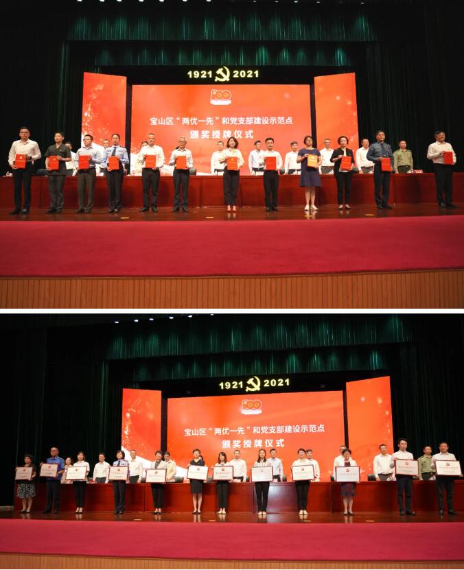 會議為寶山區“兩優一先”和黨支部建設示范點頒獎授牌。