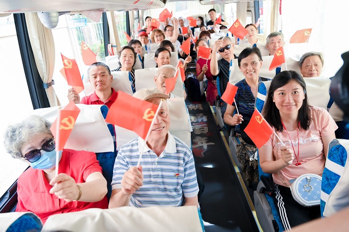 虹口紅色專線巴士還將不定期特邀虹口區“人人都是宣講員”主題活動中的紅主播登上車輛,通過宣講互動,為乘客帶去更為真切生動的游覽體驗。在今日江灣鎮街道發車的首趟紅色專線巴士上,東航“凌燕”青年講師團領隊、上海市“青年五四獎章”獲得者李尹為乘車黨員群眾開展了首次黨史學習教育宣講。江灣鎮街道彩虹灣大型動遷房基地的黨員代表倪青表示,今天“潮涌百年,紅色印跡”紅色專線巴士在虹灣啟動,給居民提供了便捷,我們將帶上社區里多位黨齡50年以上的老黨員,一起重溫黨的光輝歷程,感悟初心使命。