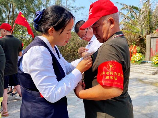 世茂服務海峽區域公司世茂怒放海小區物業聯動月亮灣指揮部及世茂業主黨員老兵志愿者服務隊,一同前往當年解放軍渡海先鋒營登陸海南的地點——昌灑赤水港,F場,黨員和老兵業主們穿戴整齊,世茂服務人為老兵志愿者們佩戴黨徽。烈日下,大家齊聲朗誦詩歌,唱起《英雄之歌》,隨后在紀念碑前宣讀入黨誓詞,重溫革命精神。