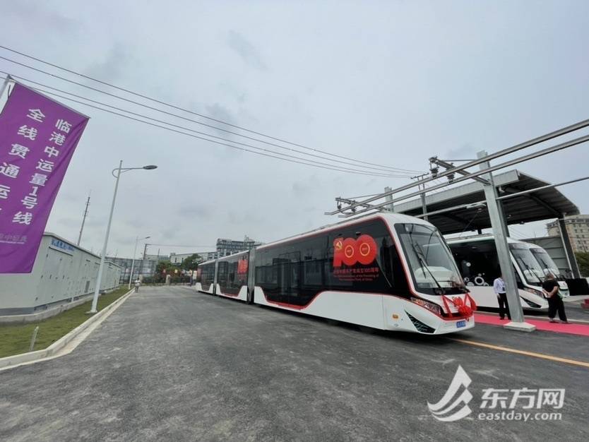 繼71路中運量之后,上海又迎來一條中運量線路投入運營。今天上午10點,在浦東新區泥城鴻音廣場,牌號為“上海LG008”的建黨百年專列準時發車,臨港中運量1號線全線貫通,正式投入運營。