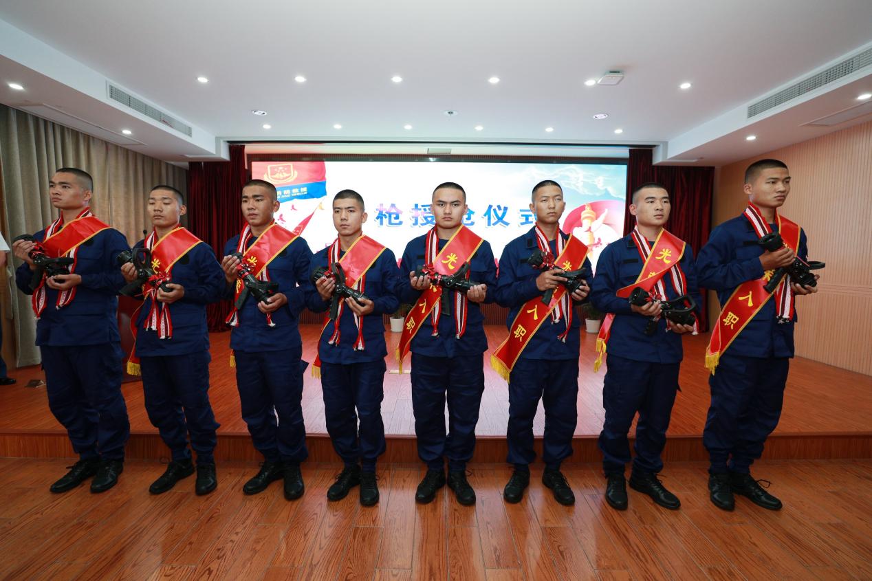 2020年8月,新入職云南紅河消防員參加水槍授槍儀式。圖片由上海市政府合作交流辦提供