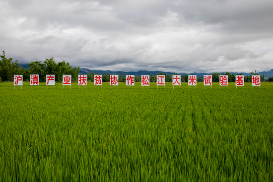上海松江區于2017年將松江大米引入到云南勐?h試種,松江區農業技術推廣中心與西雙版納傣族自治州農業科學研究所簽訂技術協作協議,由松江區提供種苗,指導育秧、水稻栽插、水肥管理與病蟲害防治等。大米的畝產達700余千克,比當地水稻畝產增加200千克/畝以上,輻射帶動當地農民增產增收。