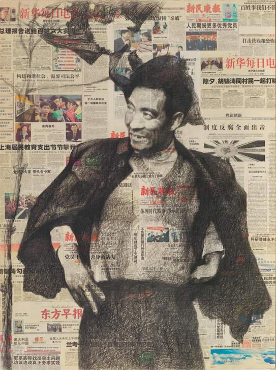 《焦裕祿》周長江_2011_88×118cm素描 綜合材料