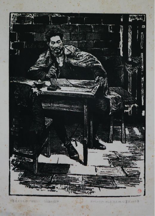 《魯迅與方志敏之一·方志敏在獄中》張懷江 43×32cm 版畫