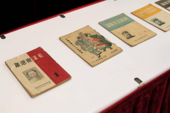 收藏者石偉捐贈的“1945年蘇中版《毛澤東選集》”等書籍。