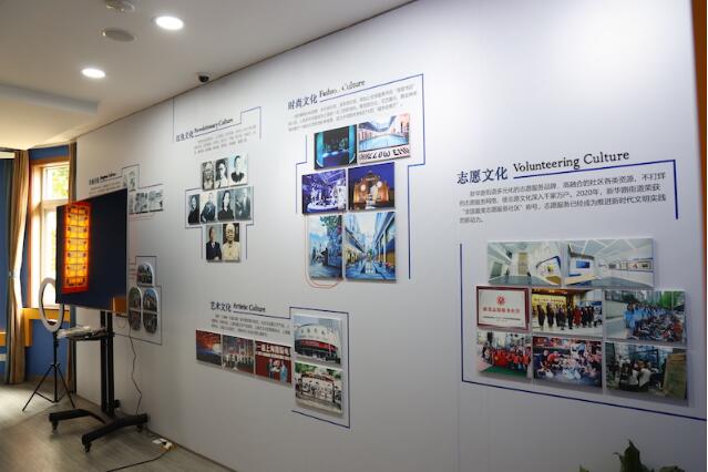新華路街道黨工委書記章維介紹,踐行“人民城市”重要理念,街道以“百歲新華新風貌”為主題,推進建設創新社會治理“一街一品”項目。原本的老洋房建筑經過近半年建設與布展,成為面向社區居民的開放、多元、包容的“城市會客廳”。