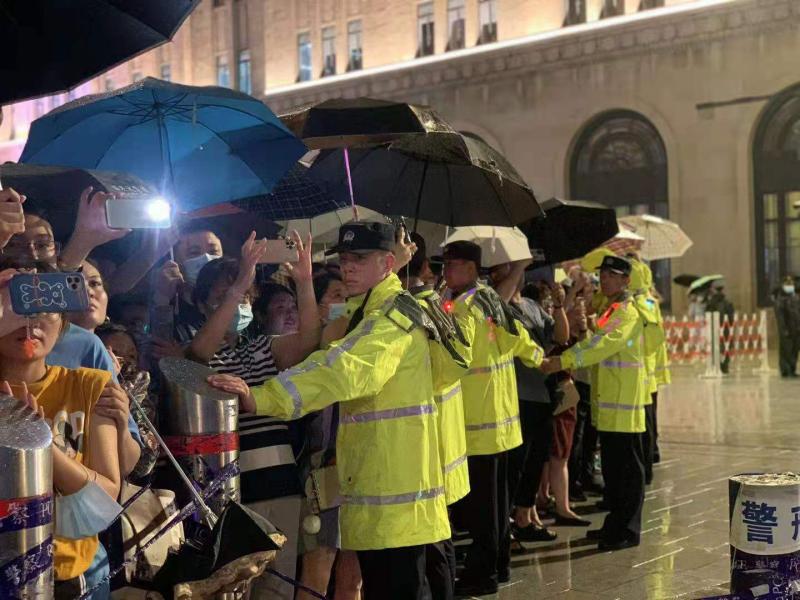 看到路邊冒雨執勤的公安民警、武警等安保力量,她感到十分敬佩!懊看喂澕偃蘸椭卮蠡顒,路上都有警察和武警為我們保駕護航,讓我們安全又安心地觀賞這美輪美輪的浦江風景,太辛苦了。我覺得,他們辛勤付出換來城市的安全、有序,就是上海的‘軟實力’!