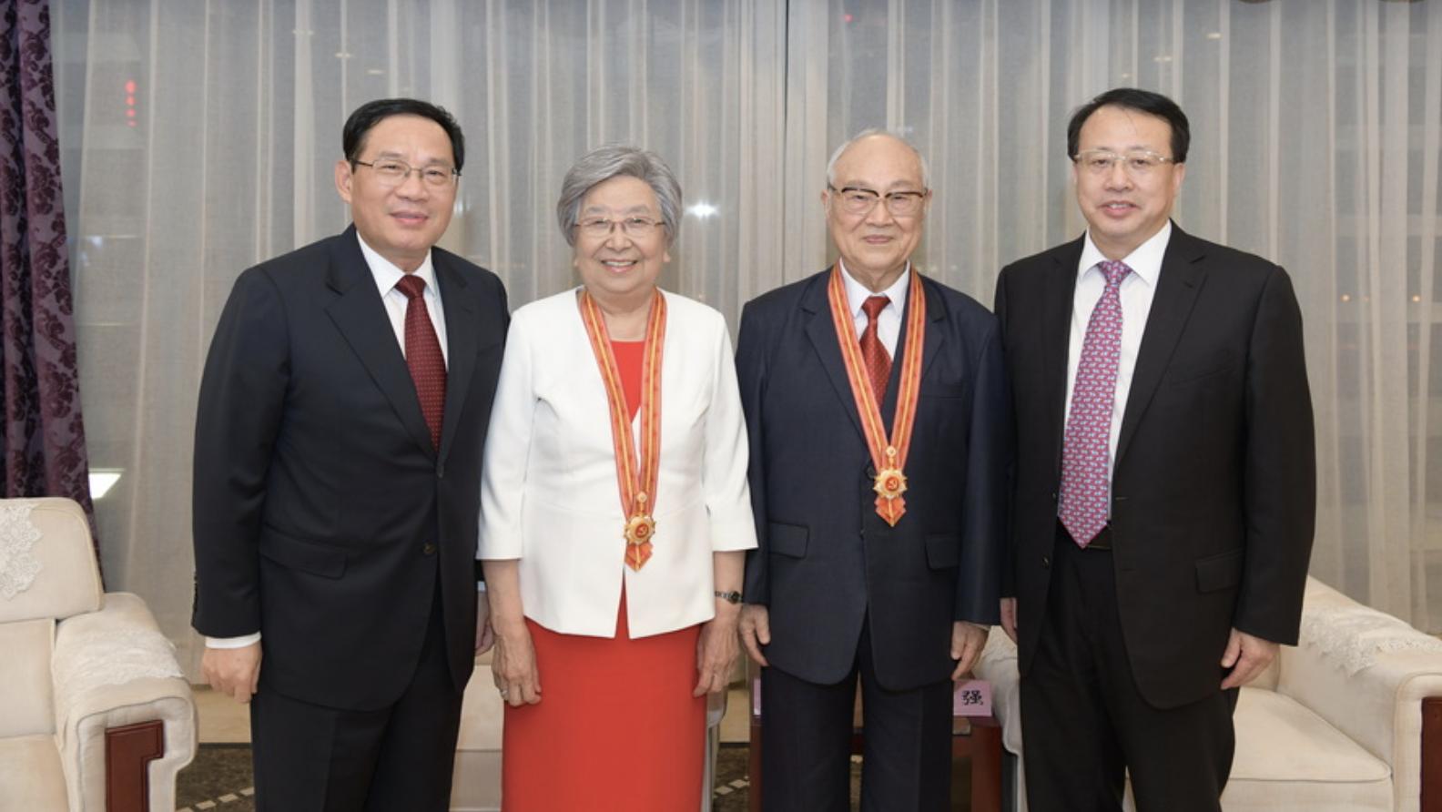 李強、龔正會見“七一勛章”獲得者呂其明、黃寶妹。陳正寶 攝