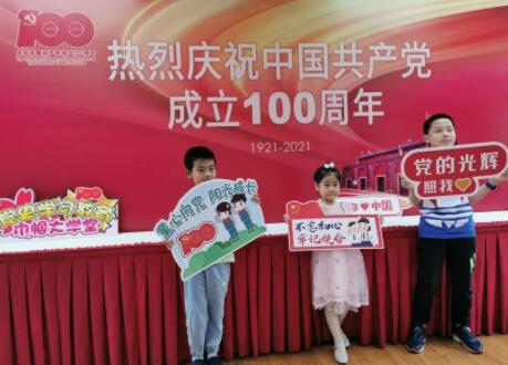 《中國紅》《七月的天空》……孩子們在老師的帶領下一起誦讀紅色經典詩歌,激揚的文字、稚嫩響亮的童聲歌頌著黨的百年風華,展現出少年兒童對黨和祖國的無限熱愛和祝福。