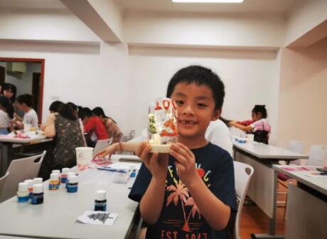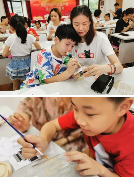 在“黨的光輝照我心”活動中,孩子們將選好的圖案固定在玻璃燈罩內部,調整好位置后用勾線筆勾出輪廓,隨后再填上自已喜歡的顏色。