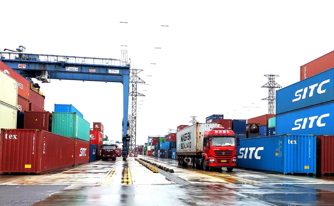 上海外高橋港區,貨運車輛往來密集。 巨云鵬攝