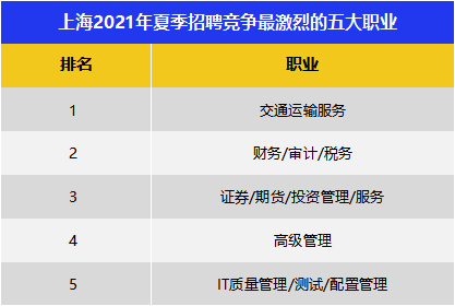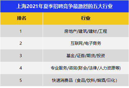 2021年夏季上海人才供給報告出爐 競爭熱度呈季節性回落