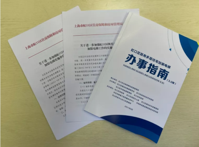 為了更好地解答居民“怎么加”“找誰加”的問題,2018年,區房管局組織協調區建管委、區規劃資源局、區市場監管局、區財政局等部門,編制《虹口區加裝電梯辦事指南》,規范辦理手續,優化審批流程,使辦理過程更清晰易懂。同年,虹口區掛牌成立了全市第一家以加裝電梯為業務范圍的調處型社團組織——家加樂加裝電梯事務所。