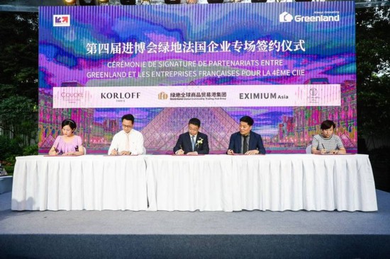 今天,10個法國優質品牌與博會常年交易服務平臺、綠地全球商品貿易港簽約,在入駐貿易港的同時,也宣布參加第四屆進博會。