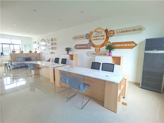 在社區中心建設中,徐練村將原先的村部升級為公共客廳,以“辦公空間最小化、服務空間最大化”為原則,通過打通空間隔斷、村委會轉型升級,打造出了高顏值、多功能的公共客廳,根據群眾需求設置前臺接待、兩委班子辦公區、條線人員辦公區、會客議事區、綜合服務區等,合理配置“一網通辦”綜合自助終端、電子數據終端和可視化場景模塊,提升社區管理綜合效能!拔覀冎Υ蛲撓捣⻊杖罕姷摹詈笠幻住,讓群眾幸福感、獲得感在家門口升級!”村務工作者沈瑜表示。