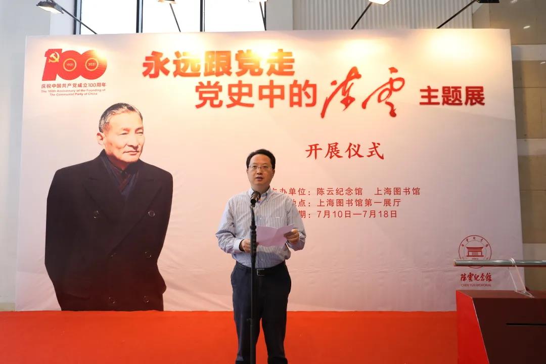 中共上海市委宣傳部副部長、市文明辦主任、陳云紀念館管理委員會主任潘敏,上海市文旅局副局長、市文物局副局長、陳云紀念館管委會副主任褚曉波,上海圖書館(上?茖W技術情報研究所)黨委副書記楊詠梅,陳云紀念館黨委書記、館長吳瑞虎共同啟動展覽。