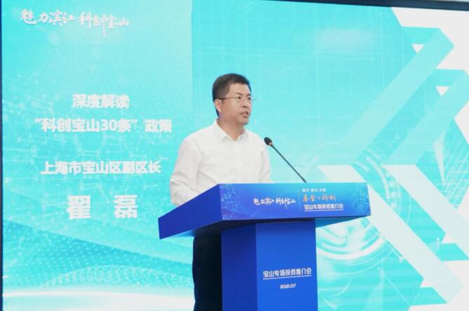 7月8日上午,由區委、區政府舉辦的“基金+科創”寶山專場投資推介會在南大召開。會上,副區長翟磊就“科創寶山30條”政策作深度解讀,寶山將每年拿出不少于10個億,給予企業最優惠的政策支持,推動寶山產業高質量發展。