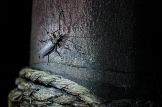 只有在一些開闊且蟲況好的地帶,領隊才會支起白布和明亮的燈光,吸引昆蟲?,形成天然的“黑板”。