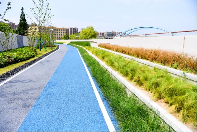 蕰藻浜濱水步道廟行段的開通,為周邊園區帶來發展新活力。位于岸線中間位置的龍盛活力小鎮緊鄰濱水步道,整個小鎮建筑布局與岸線融為一體。這里原來是土產倉庫,現在已轉型為科創、文化產業園區。蕰藻浜寶山段沿岸景觀貫通提升改造工程廟行區段的建成開放只是第一步,在“民生+發展”理念引領下,北上?苿摓场八膫象限”的開發已蓄勢待發。蕰藻浜寶山段將會有更多岸線,還水于民、還岸于民、還綠于民,寶山的這條母親河也將化身為 “科創之河”。
