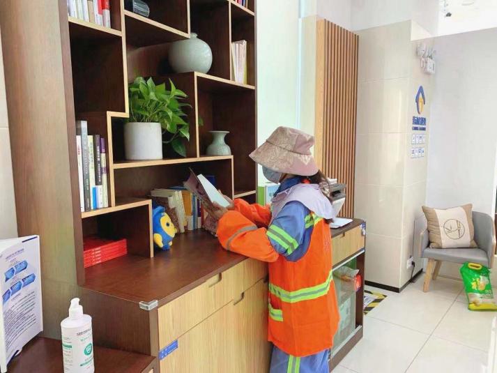 中午,驕陽似火。建行奉賢支行營業部的大廳,來了一位“?汀薄撠煼钯t南橋望園南路地區環衛工作的陳大姐,忙碌完一上午后“輕車熟路”地來到這里,倒水、充電、看書,享受她一日中難得的“書香時刻”。